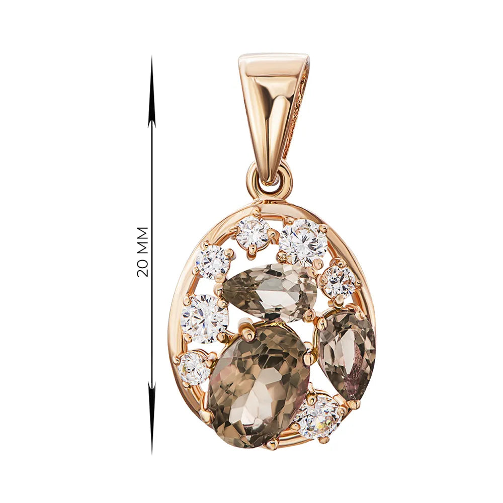Wisiorek z czerwonego złota z rauchtopazami i cyrkoniami 550090/01/0/7266