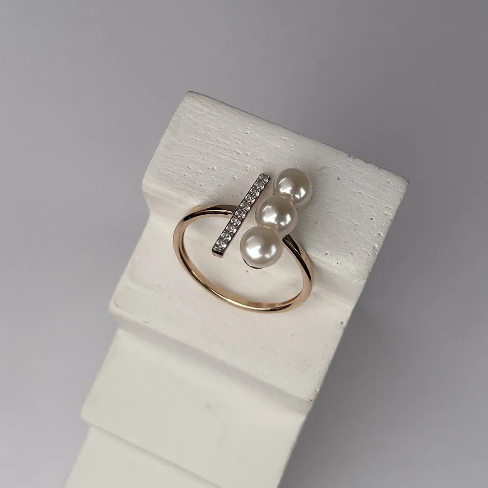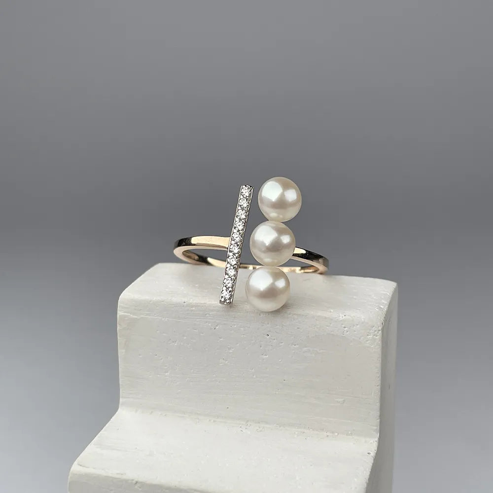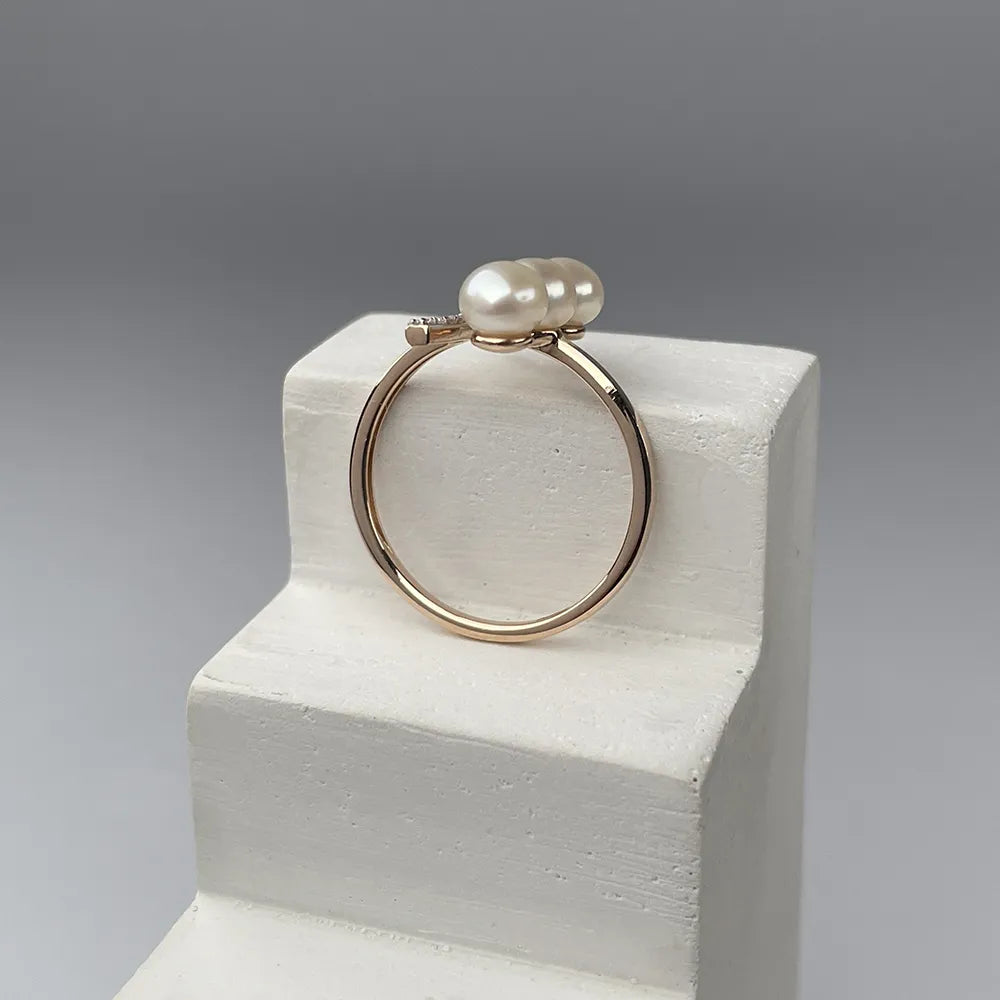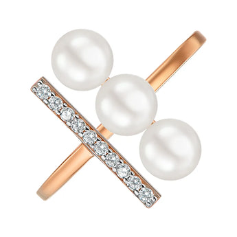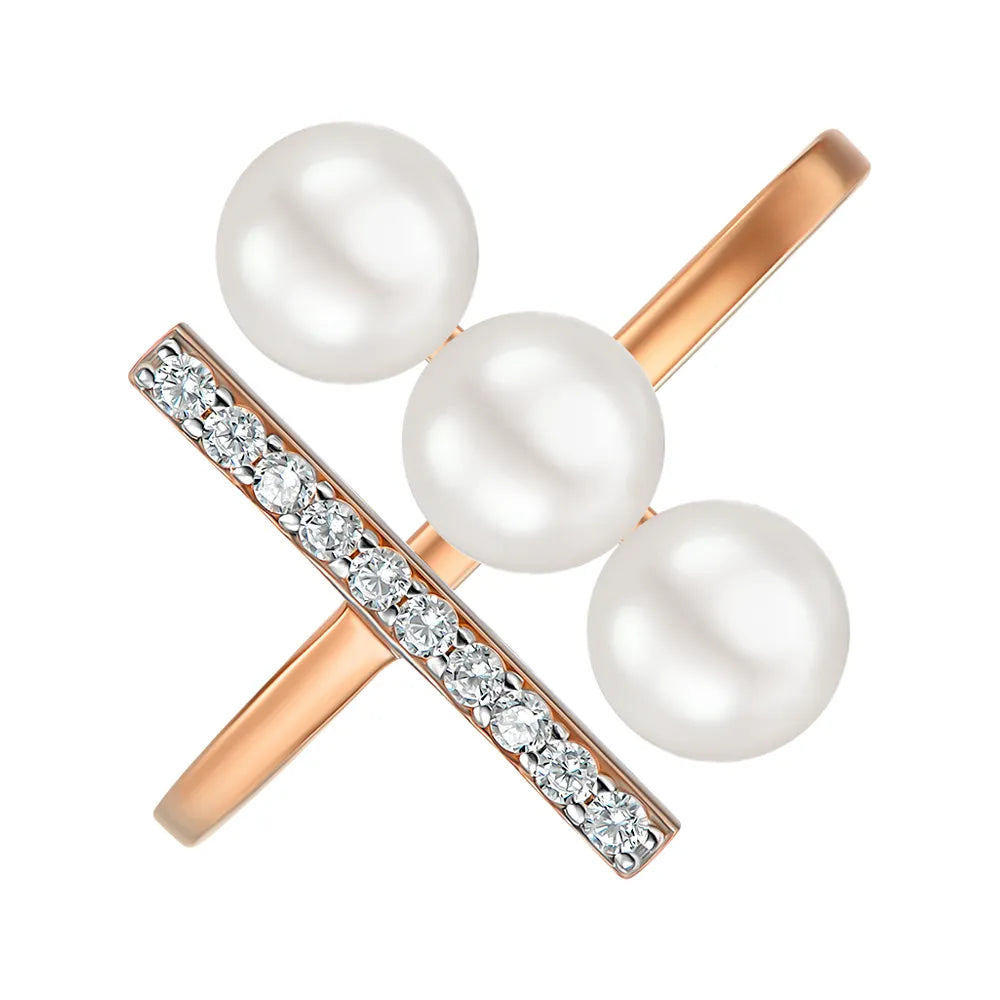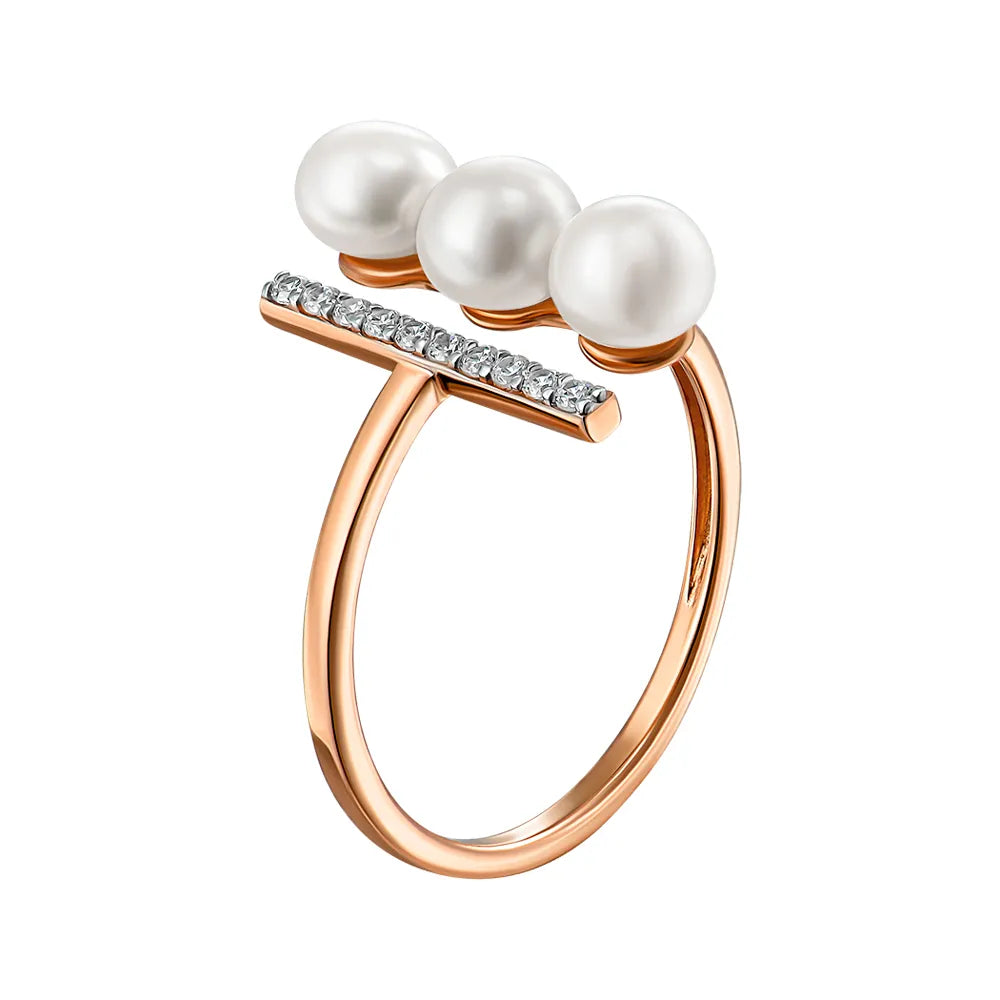 Pierścionek otwarty ze złota łączonego z perłami i białymi cyrkoniami 18184/01/1925