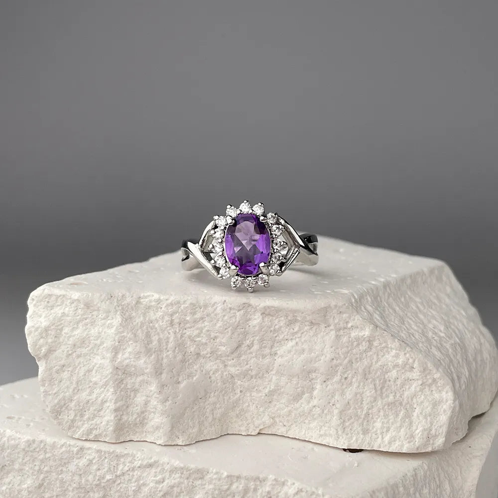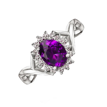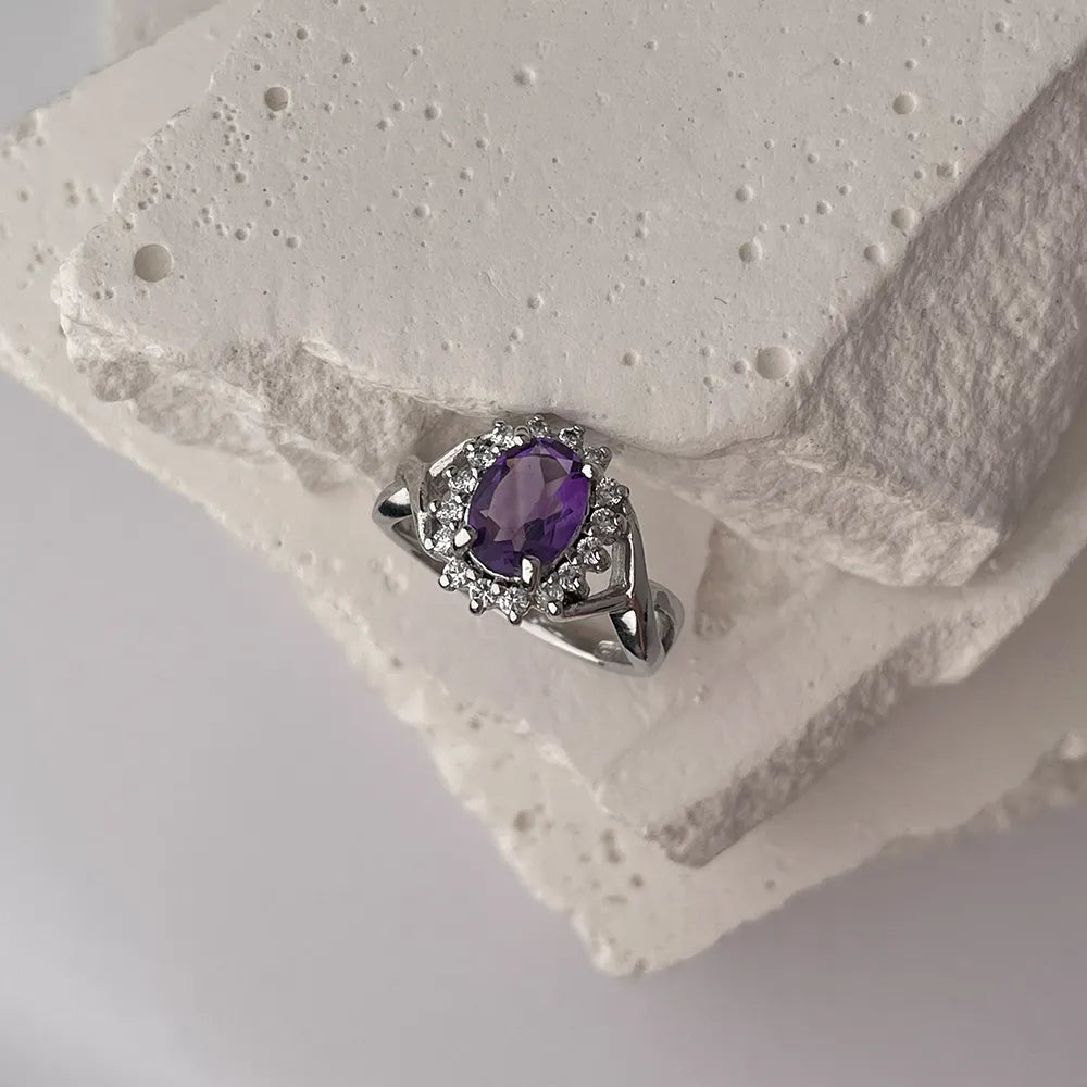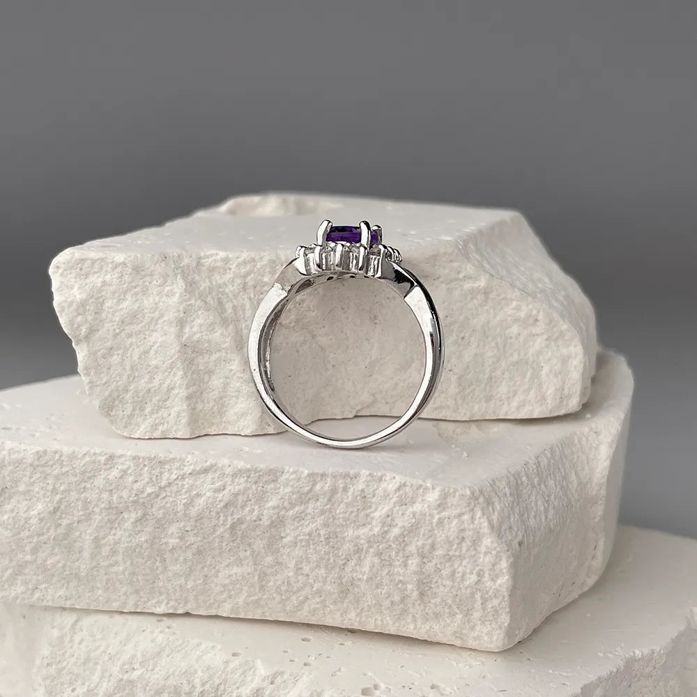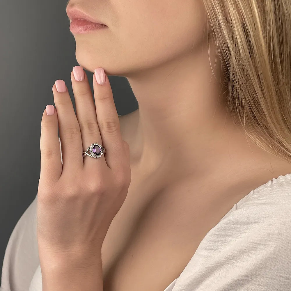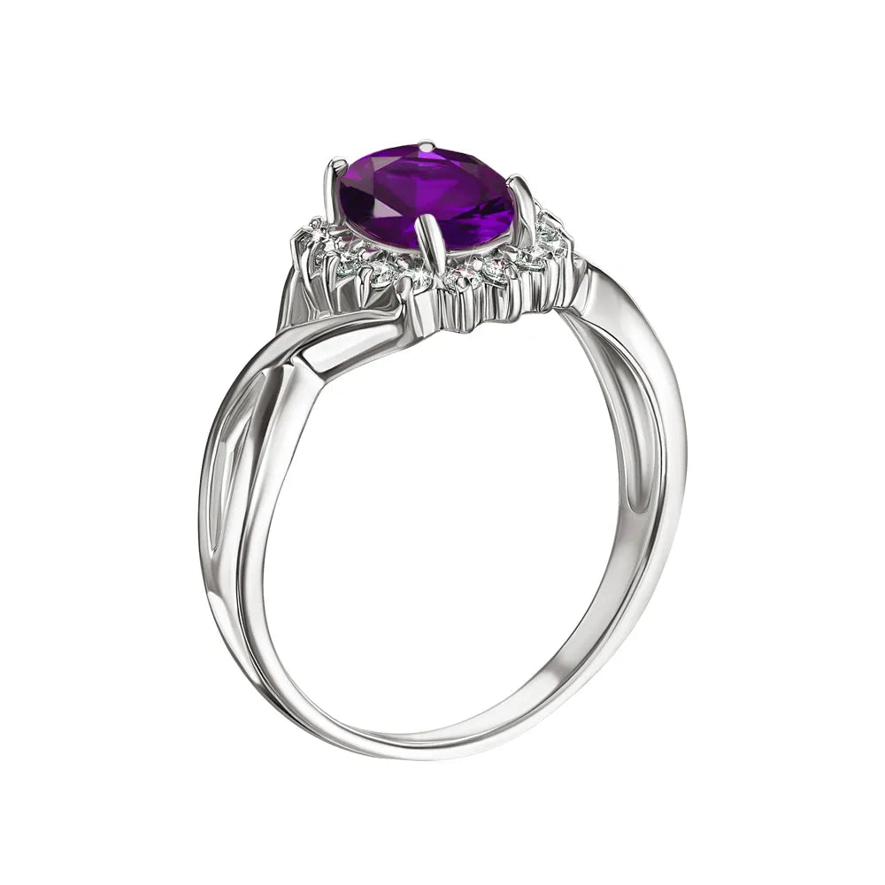 Pierścionek srebrny z ametystem i cyrkoniami GRE1906-R/12/5272