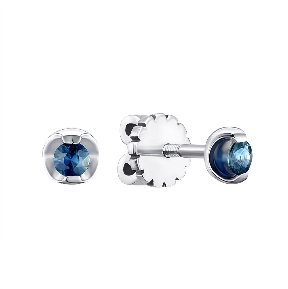 Сережки-пусети з білого золота з сапфіром 53714/02/1/8107